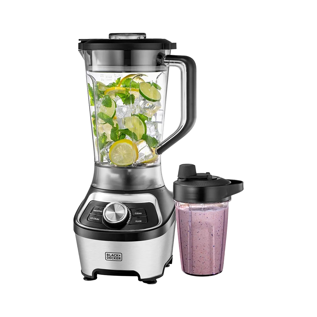 العلامة التجارية: بلاك اند ديكر النوع: خلاط كهربائي 4 في واحد رقم الموديل: SBX300BCG السعة: 550 مل اللون: أسود القوة الكهربائية: 300 وات عن المنتج: الطاقة: 300 واط السعة: كوب عصير سعة 5505 مل مع ملحق عصير حمضيات لتحضير عصير طازج متعدد الاستخدامات: طقم من 16 قطعة لتحضيرات متنوعة فعال: خاصية السرعة التوربينية لخلط مكونات مختلفة فعال: شفرات من الفولاذ المقاوم للصدأ لطحن الثلج والفواكه المجمدة الضمان: سنتين