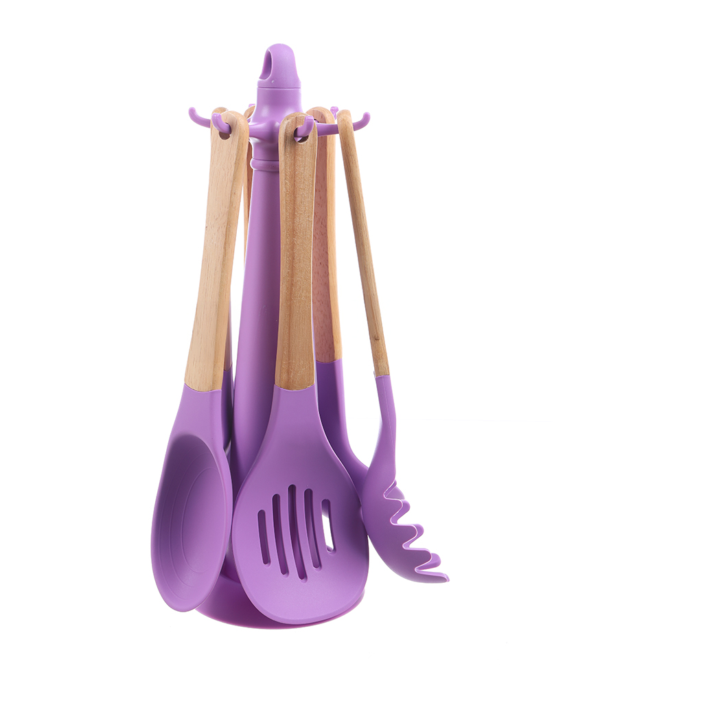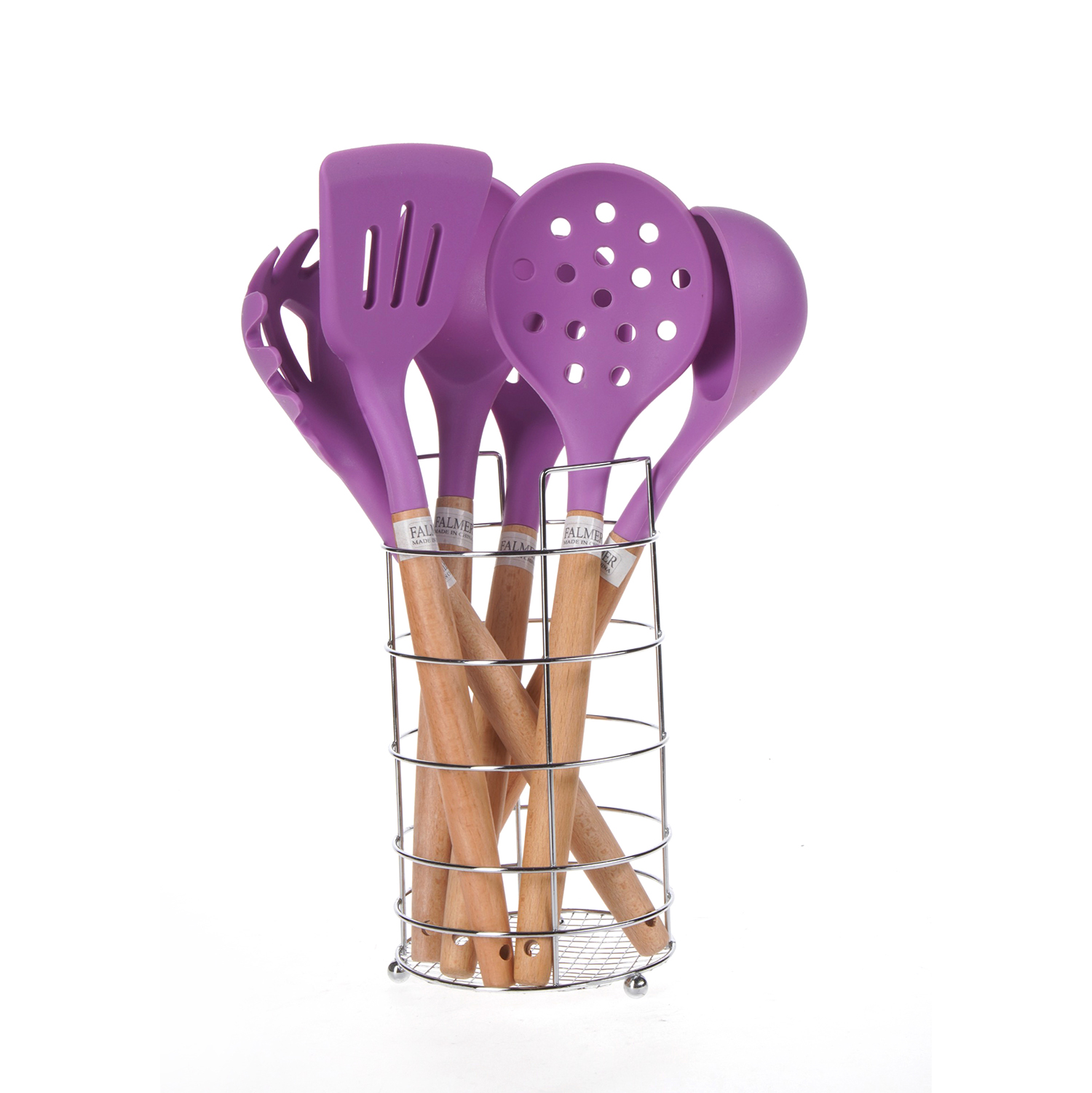العلامة التجارية: فالمر النوع: طقم توزيع اللون: موف الخامة: سيليكون بيد خشب عدد القطع: 6 قطع مع حامل معدن