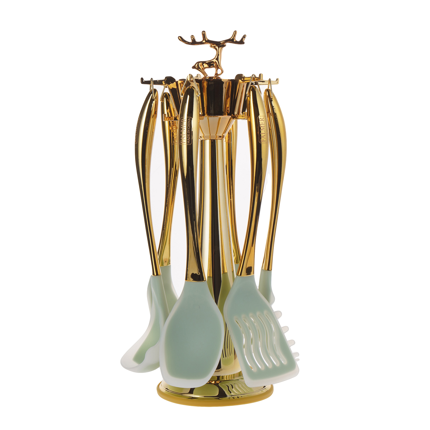 العلامة التجارية: فالمر النوع: طقم توزيع اللون: ذهبي كحلي الخامة: سيليكون عدد القطع: 6 قطع مع حامل
