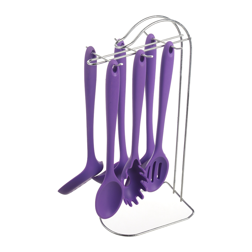 العلامة التجارية: فالمر النوع: طقم توزيع اللون: موف الخامة: سيليكون بيد خشب عدد القطع: 6 قطع مع حامل معدن