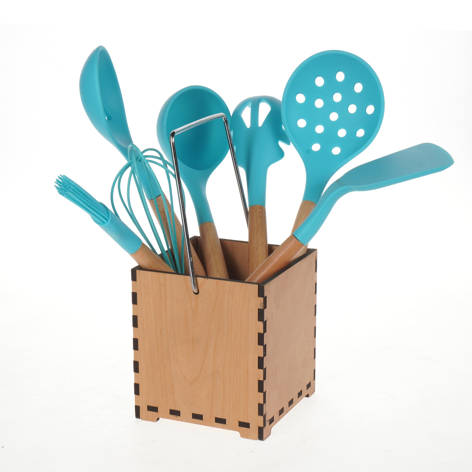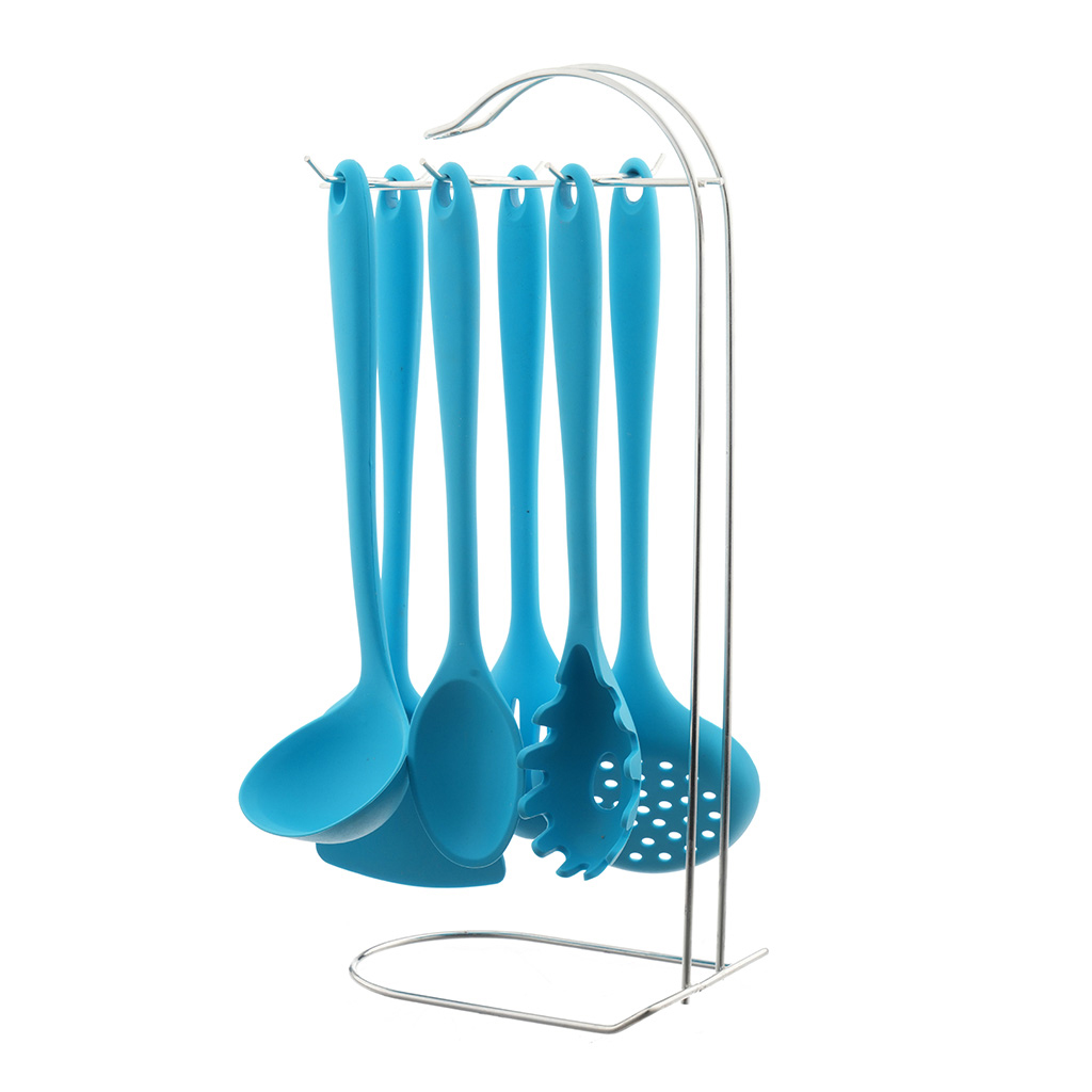 العلامة التجارية: الشهد النوع: طقم توزيع اللون: تركواز الخامة: سيليكون بيد خشب عدد القطع: 7 قطع مع حامل خشب
