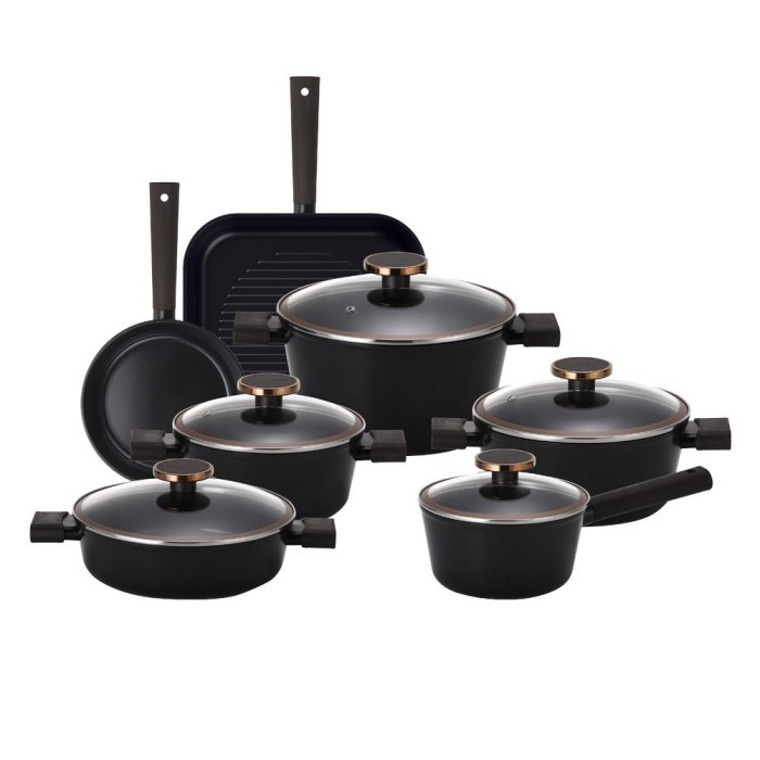 طقم حلل تيتانيوم كوكين عبود ، 14 قطعة - اسود | أسواق المرشدي