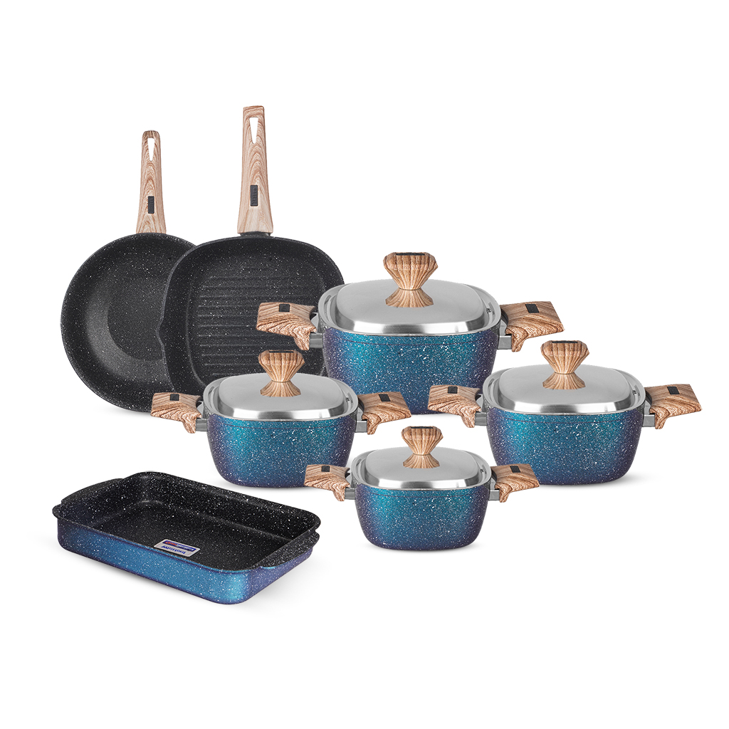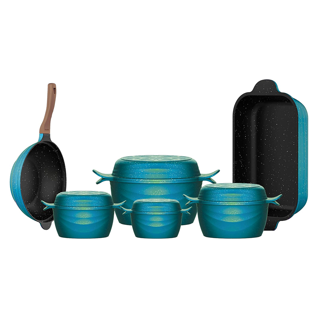 طقم حلل تيتانيوم نيوكلاين، 10 قطع - أزرق | أسواق المرشدي