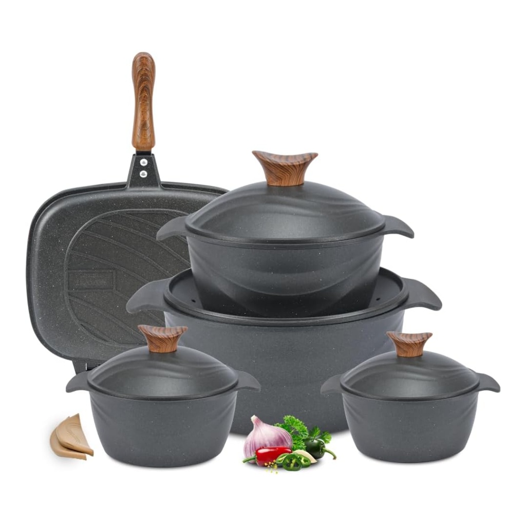 طقم حلل تيفلون جراندى كوك، 11 قطعة - أسود