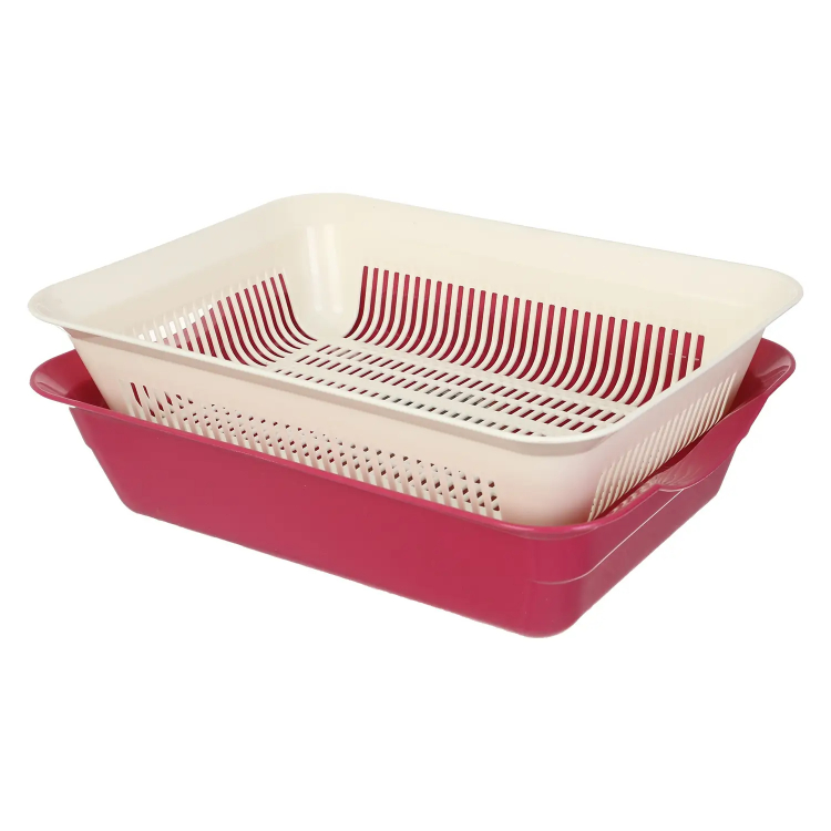 مصفاة خضروات وفواكهة مع طبق بيرفيكت بروبلاست، 2 قطعة - أحمر | أسواق المرشدي