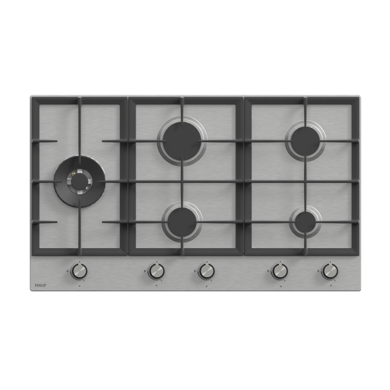 Brand: Franke Type: Stove Color: Silver Model Number: FHM9054GLTCXSC Number of Burners: 5 Gas Size: 90 cm Front Control Cast Iron Holders Triple Burner Dimensions: Width: 880 mm Depth: 510 mm Height: 38.5 mm